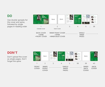 - The spine area on the reverse of the cover is not printable, since it is where the interior pages will be glued.