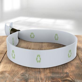 The polyester and recycled wristbands include a handy plastic closing, so they will stay firmly attached and are non-transferable. Satin bands are provided with an aluminium clip and special pliers to close the wristband.