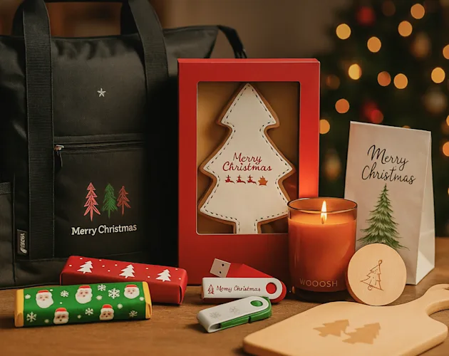 Crea regali di Natale personalizzati per clienti e team. Fai brillare il tuo brand e diffondi la magia delle feste con HelloPrint.