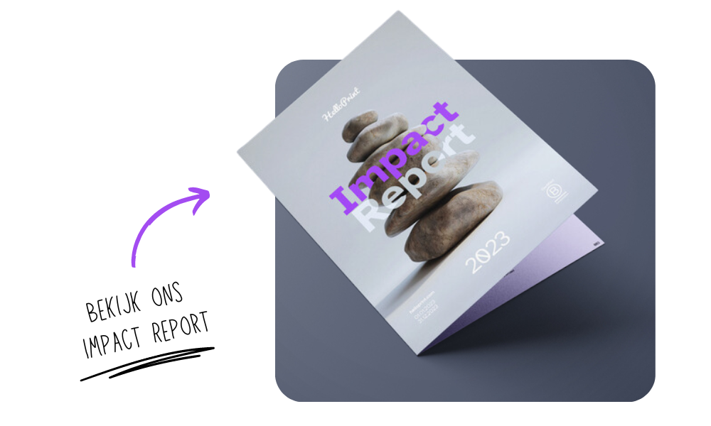 Het impactrapport van HelloPrint biedt een uitgebreid overzicht van onze ecologische voetafdruk en laat zien hoe wij ons inzetten voor duurzaamheid. Want een duurzaam beleid start met inzicht.